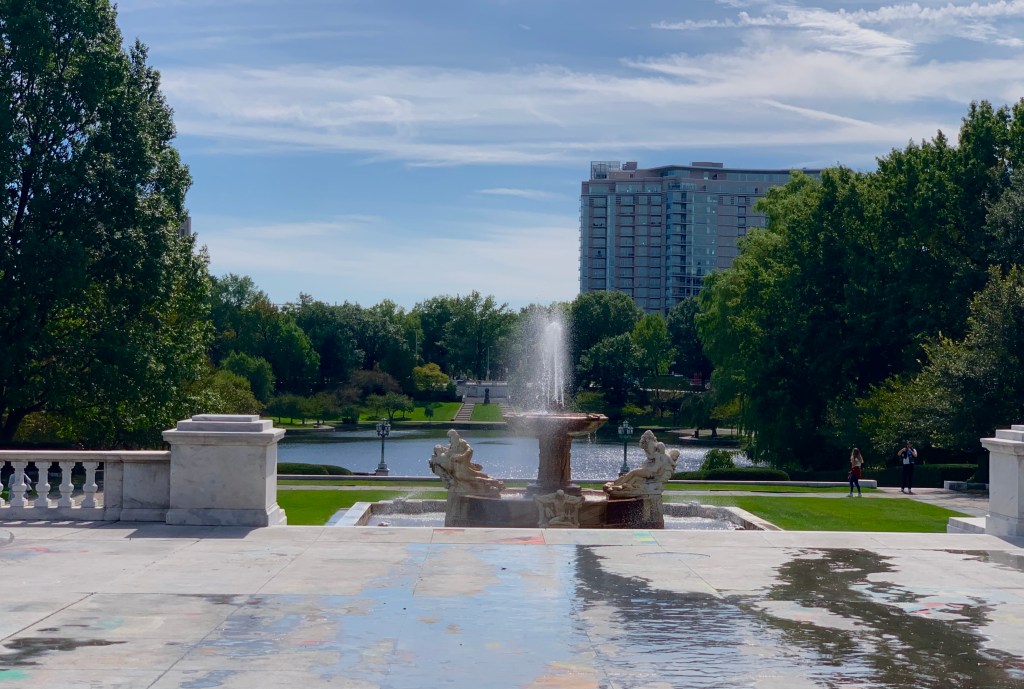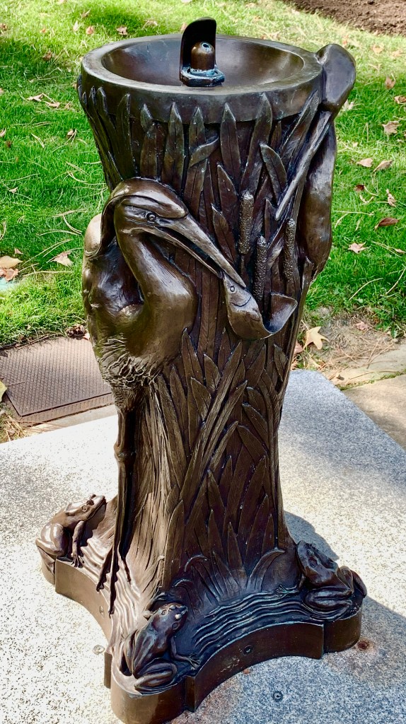 The Fine Arts Garden behind the museum was designed by Frederick Law Olmstead Jr. and dedicated in 1928. Like the rest of the museum, the garden has been modified over the years. Sculptures spanning the years are artfully placed. The lagoon is surrounded by weeping Japanese Cherry trees. I really liked the detail of the great blue heron drinking fountain on the east side of the lagoon.