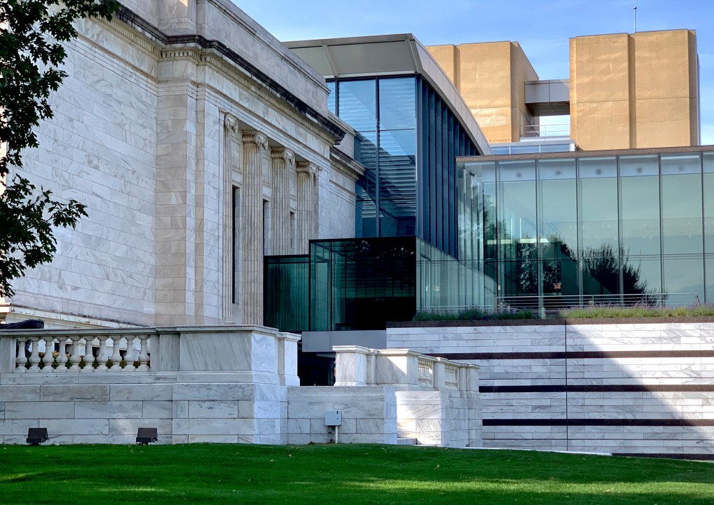 The Cleveland Museum of Art has a delightful permanent collection. It is curated with care. Quality rather than quantity governs. In 1916 the current museum was opened. Designed by architects Benjamin Hubbell and W. Dominick Benes the Beaux Arts style building had two wings flanking a central rotunda. In 1958 an addition was designed by a local architecture firm, Hayes & Ruth. Yet another addition, designed by Marcel Breuer, was added in 1971. A west side addition was added to the complex in 1983, designed by a local architecture firm, Dalton, van Dijk, & Johnson. During the years, public areas have been upgraded and galleries redefined. The entrance to the museum in the picture above is now locked and considered the rear of the building.