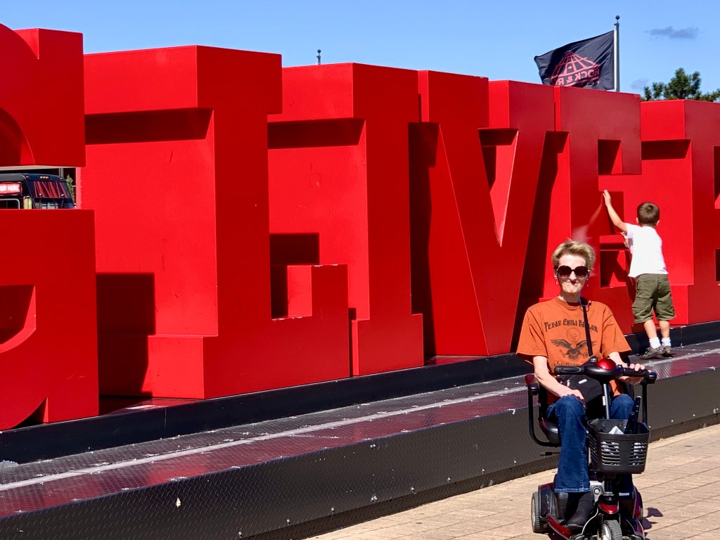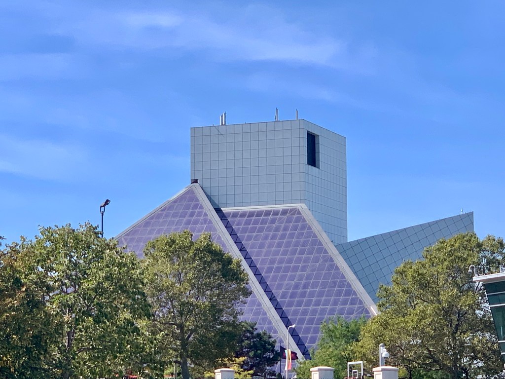 We stayed at the Crowne Plaza Hotel in the “Playhouse Square” District of Cleveland. It’s a very good location and along the main bus line and within walking distance of the Rock & Roll Hall of Fame. Hotel staff were great. The hotel offers a guest shuttle, which was needed. Cleveland is a driving city. Typically I can walk in big cities for hours. Not in Cleveland. We set off on foot toward the museum district from our hotel (my idea). After about 30 minutes we encountered block after block of fenced and deserted properties. It turned into a hot slug along deserted city blocks. Not good. I cajoled Elna onto a city bus to the museum. A double Xanax adventure for sure. The bus driver was great and we made it to our destination. I doubled down on a bus ride back to the hotel. After that, it was cabs or hotel shuttle.The cabbies added to the friendly vibes of the city.