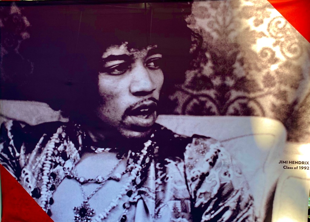 A major attraction, the museum is housed in a multistory modern glass structure chock full of displays from every genre of music that even remotely resembles rock. The place was crawling with white geezers … fellow travelers down memory lane. Definitely not a poster child for diversity, in spite of Cleveland’s very diverse population.