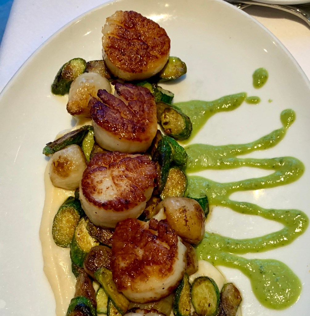 Bluepoint was close enough to the hotel to qualify for the free shuttle. The hotel shuttle drivers rocked! And, the scallops at the restaurant were perfect.For all you Geezers On The Go – Keep on Keeping On!