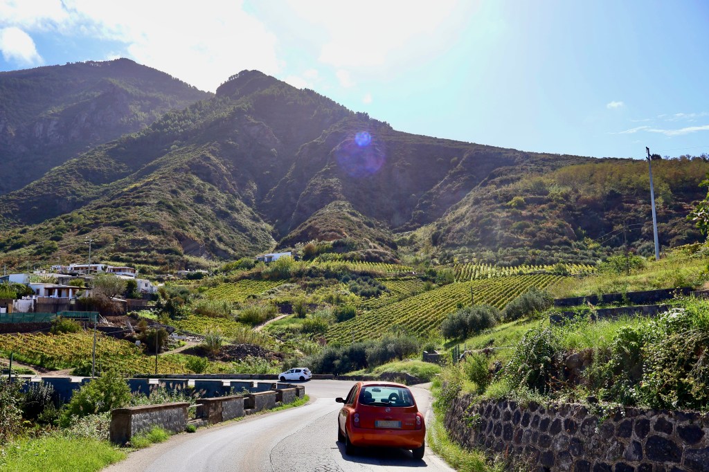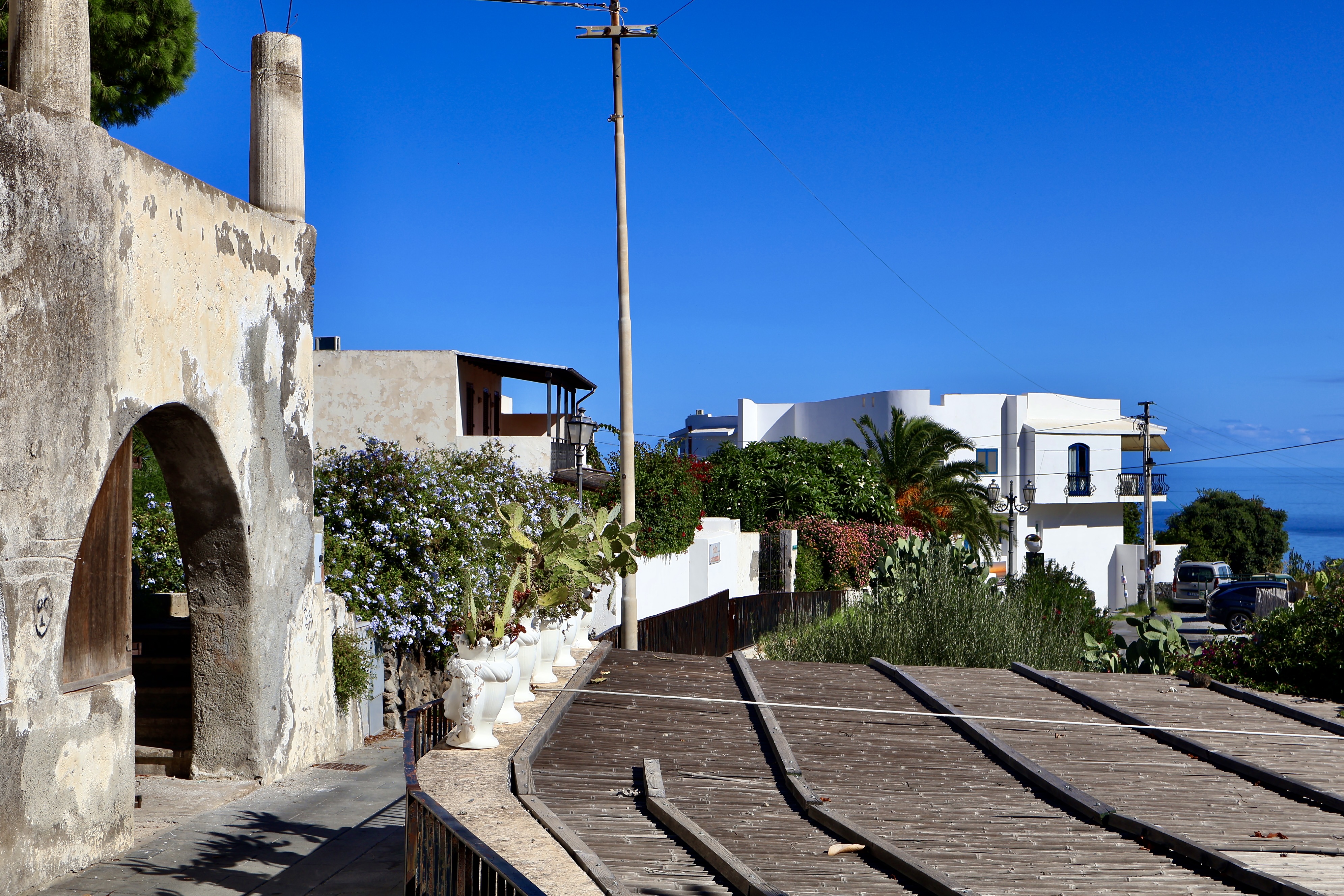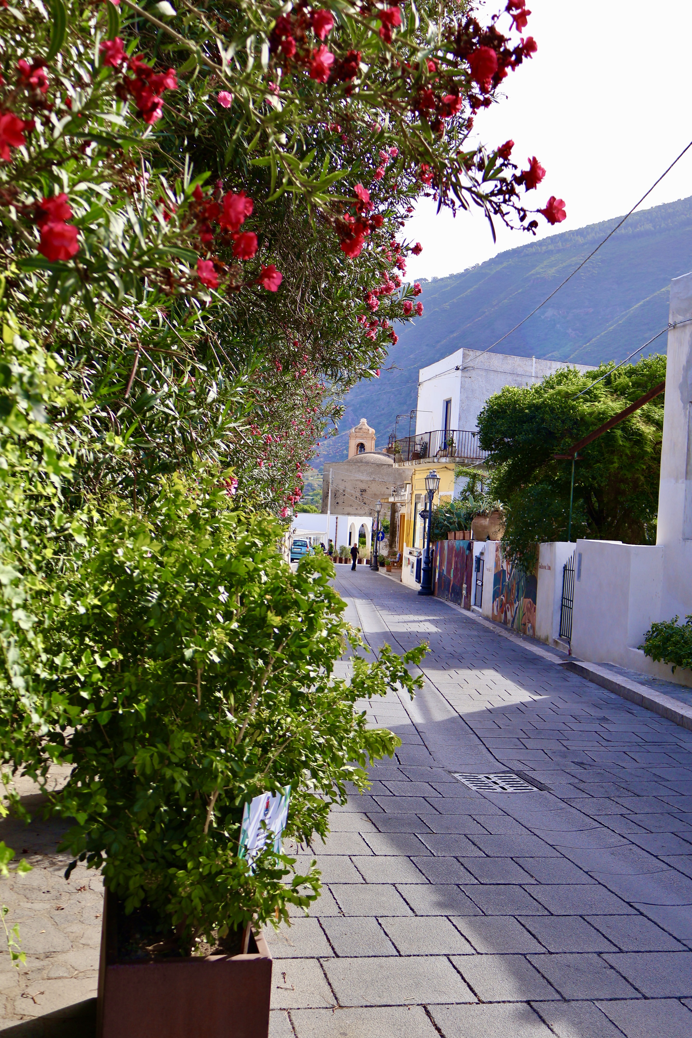 Each village on Salina has its own vibes. What they share in common is a quiet calm and the omnipresent fragrance from blooming plants … everywhere! Flowers surround fruit trees, grapes and vegetables in lush overgrown home gardens. Larger vineyards make-up a huge part of the island.