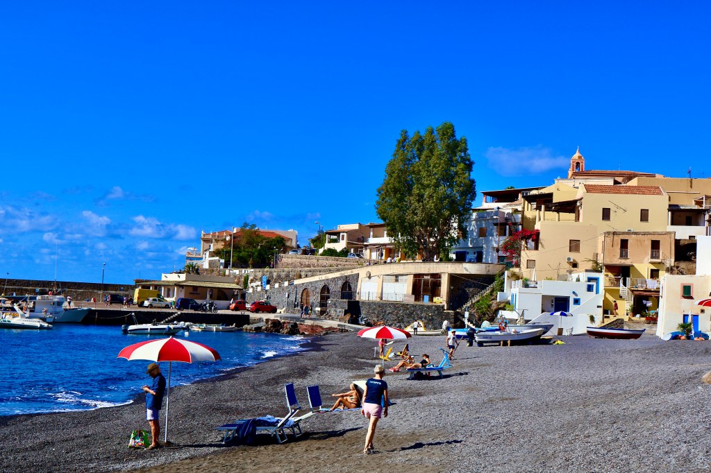 A fleet of comfortable hydrofoil ferries provide access to these remote Sicilian islands. The most common mainland port is Milazzo, where we boarded a ferry for the 1 ยฝ hour trip to Santa Maria Salina. Along the way, the ferry on and off loaded passengers bound for other islands. The ride was a nice way to gain a snapshot view of the archipelago’s tiny ports. Contrary to all myths about Italian efficiency, you can set your watch to the ferry’s scheduled departure and arrival times.